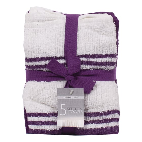 Dry Up In Style With These Stylish 5 Purple And White Kitchen Towels With 3 Purple And White Striped Ones And 2 Purple Ones, Add Some Colour To Your Kitchen.