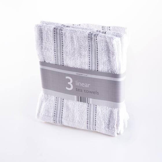 Tea Towels White Grey Linear 3 Pack