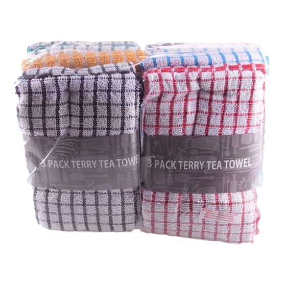 Terry Tea Towels 3 Pack Assorted
