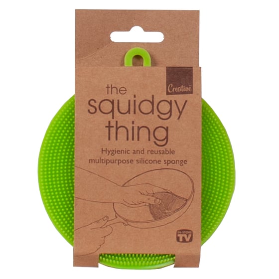 The squidgy thing silicone sponge is ideal for the kitchen and all daily cleaning tasks around the home. The sponge is durable - there's no need to throw away sponges. The squidgy thing is residue free, odourless and anti bacterial. It is also scratch proof; ideal for pots, pans, ovens and delicate materials.
