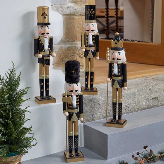 Accessorise your home in style this Christmas with a classy black & gold X-large nutcracker from Three Kings which is a free-standing decoration that is the ideal floor decoration in front of a staircase or Christmas tree.