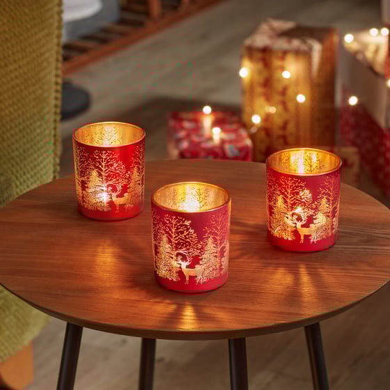 Transform Your Home Into A Winter Wonderland With The Three Kings Wonderland Christmas Ruby T-light Holders 3 Pack.