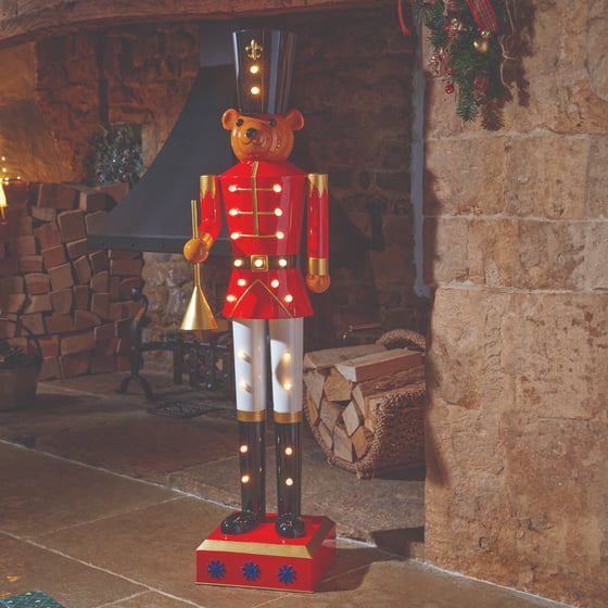 Get ready to make a statement within your home this Christmas with the Three Kings Inlit LED Christmas giant teddy nutcracker! Standing at 1.2m tall, this nutcracker is sure to add a touch of festive magic to your home. With its LED lights and charming teddy bear nutcracker design, it's the perfect way to spread Christmas cheer. Originally used as message of peace, luck and goodwill, this beautiful bear is a charming finishing touch for your winter wonderland, and he also makes a unique gift for a loved one