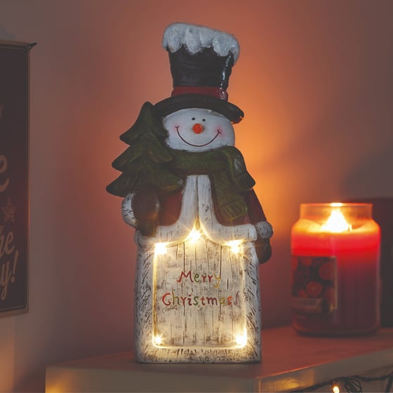 Bring some festive magic into your home with this fantastic beautifully lit festive snowman figurine from Three Kings which would be the perfect addition to your Christmas display in any room within your own and is free-standing allowing you to place it anywhere you like including the windowsill, mantelpiece or table plus much more.