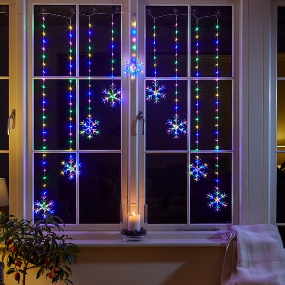 Add a touch of magic to your festive home with the Three Kings multi-coloured snowflake curtain Christmas string lights. The delicate snowflake design and warm, festive glow will create a cosy and inviting atmosphere. Perfect for adding a cheerful and festive touch to your windows, walls, or doorway. Spread the Christmas spirit with these charming lights.