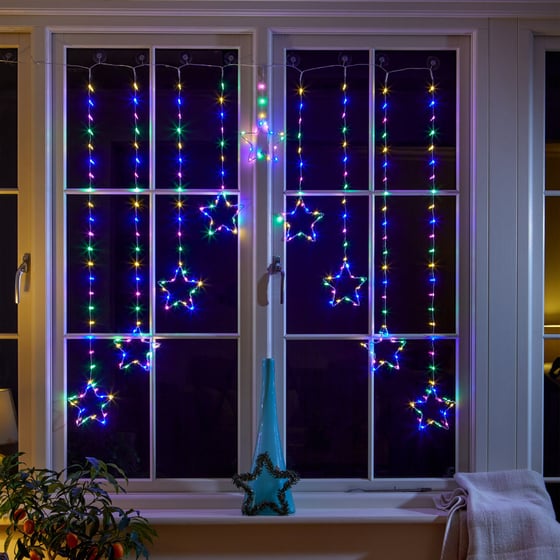 Three Kings Multi-Coloured Star Christmas Curtain Lights 120cm