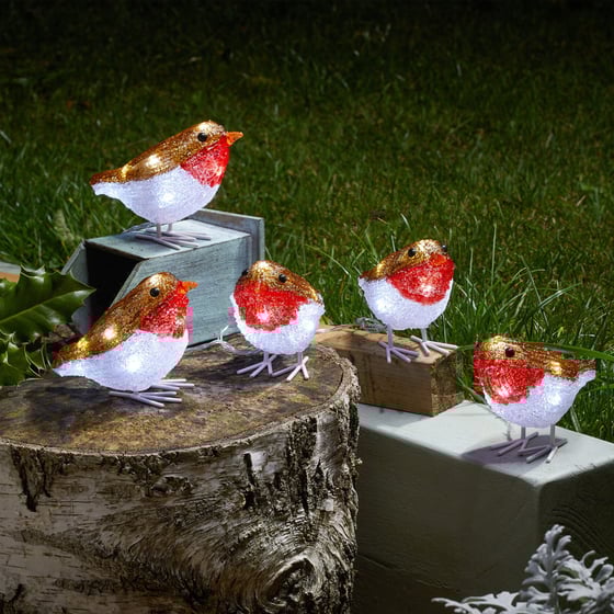 Brighten up your Christmas décor in your home and garden with the Three Kings set of 5 Inlit LED Christmas ice robins! These charming robins feature a unique inlit design with LED lights, adding a warm and festive touch to any Christmas display.