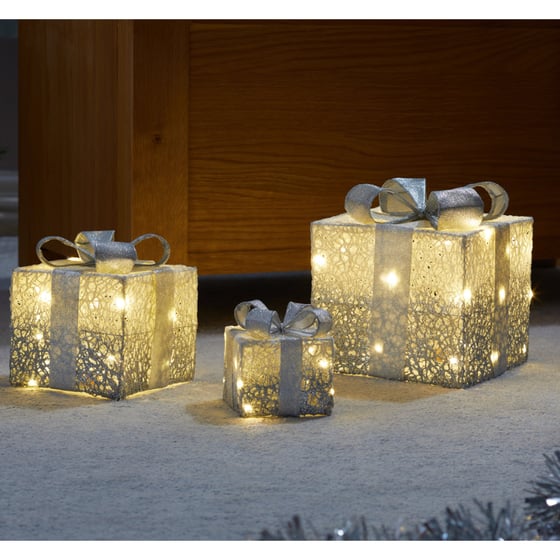 Get your home all wrapped up with this delightful set of 3 silver sparkly faux gift boxes from Three Kings which are perfect for use under the Christmas tree or can be placed within the corner of your home to create a wonderful sparkly festive scene and will bring a festive touch to your home this Christmas.