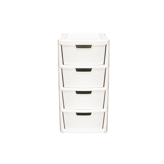 Thumbs Up Rattan 4 Drawer Plastic Storage Tower in a sophisticated Cream finish.