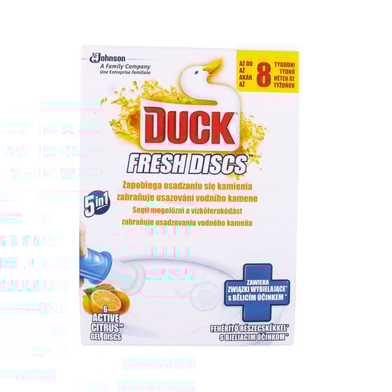 Toilet Duck fresh discs cageless rimblock provides a flush activated protection shield all around the bowl, repelling limescale so that stains don't stick.
