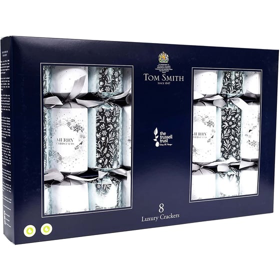 Tom Smith Silver & White Luxury Christmas Crackers 8pk