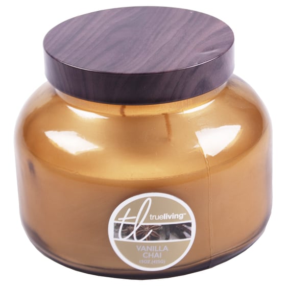 Add some light and create a warm atmosphere within your home with this delightful 15oz Vanilla Chai candle from True Living. The Vanilla Chai candle has been made with wonderful natural blends that ensure a clean burn. The candle melts evenly and will provide a consistent scent to spruce up the room and create the perfect atmosphere.