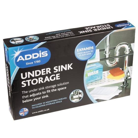 Make additional storage within your home in the most awkward areas in your bathroom or kitchen with this practical and clever under the sink storage organiser. The unique design enables you to be able to create your own shelving amongst your pipe work within your cupboards.