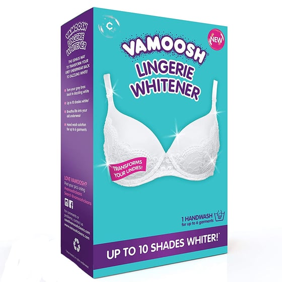 For incredible results, you need the Vamoosh lingerie whitener to be able to transform your bras and underwear up to 10 shades brighter so say hello to your new secret weapon against greying undies as it will revive and refresh your old underwear with the Vamoosh easy-to-use hand wash solution.