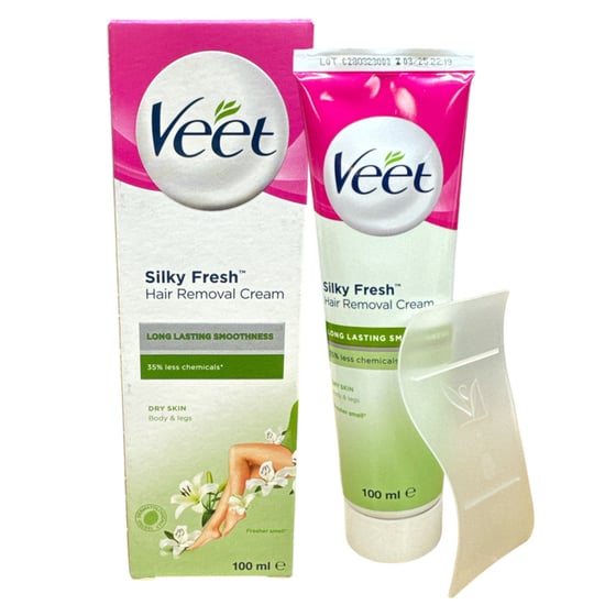 Say goodbye to stubble and hello to beautifully bare skin. Veet's unique formula gently removes unwanted hair, leaving your skin feeling silky-soft. Enriched with moisturising ingredients, this cream nourishes dry skin as it removes hair, revealing a smooth, radiant complexion. Perfect for those with sensitive skin, Veet Silky Fresh is the effortless solution to achieving salon-smooth results at home. You can easily and quickly remove unwanted hair growth without worrying about irritated or dry skin. The unique formula of this cream is enriched with moisturizing ingredients that leave your skin well-nourished and hydrated.