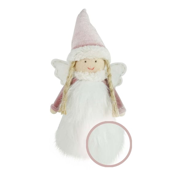 This Little Cutie Stands At 20cm High And Has A Pink Velvet Hat And Sleeves With A White Faux Fur Dress, Blonde Hair Braided Into Pigtails And Wings On Her Back.