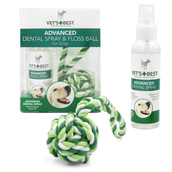 The Vet's Best natural dental spray & floss ball is ideal for eliminating bacteria within a dogs mouth and can also prevent dental plaque and tartar.
