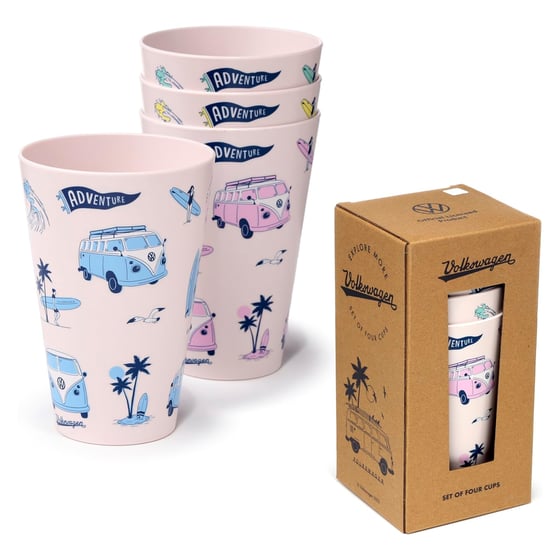 Embrace the spirit of the open road with these nostalgic Volkswagen T1 Camper Van cups. The RPET material is tough enough to withstand the rigors of camping, hiking, or picnicking, while the vintage camper van design adds a fun, retro flair to your outdoor gatherings. Sip your favourite beverages in style and make lasting memories with this reusable, sustainable drinkware set.