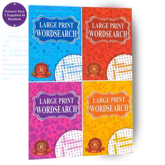 These 4 Assorted large print word search books have over 200 brain teasers in each. Challenge your brain with these 90+ brainteasers! This will keep you occupied for ages. Going on a flight? Or a long train journey? This will sort out that boredom!