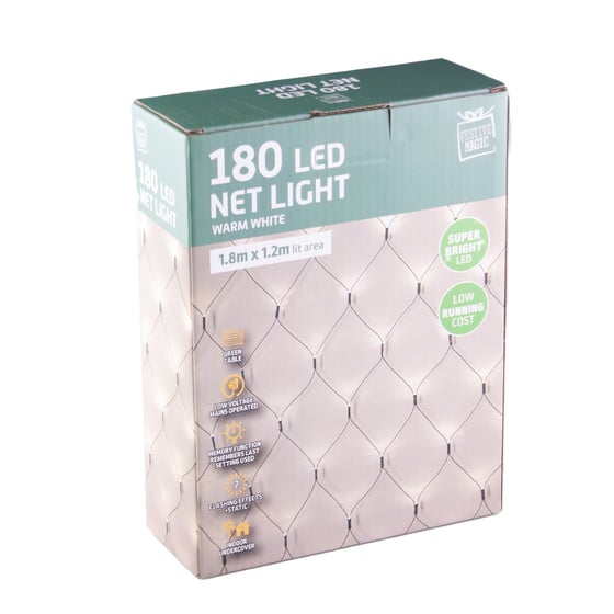 Festive Magic Warm White Super Bright 180 LED Christmas Net Lights