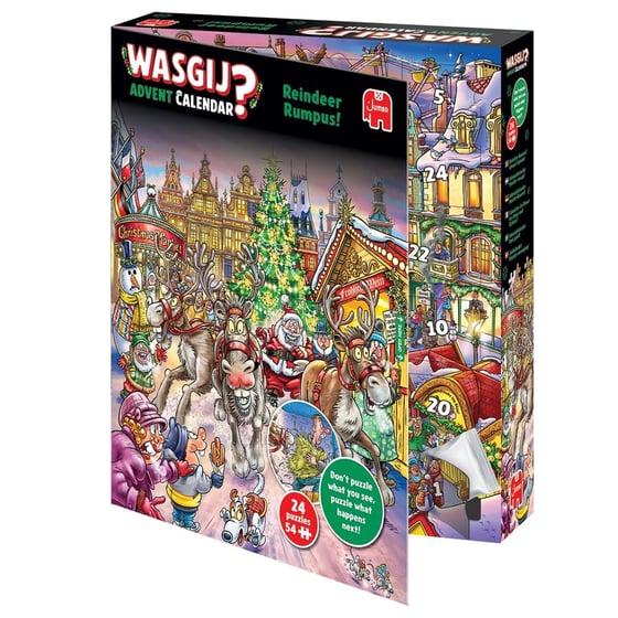 Bring a whole new twist to your Christmas countdown with the Wasgij Reindeer Rumpus Advent Calendar. Forget chocolate—this clever and quirky calendar includes 24 individual puzzles, each with 54 pieces, offering a fun and brain-teasing experience every day in December. Based on the iconic Wasgij format, each mini puzzle asks you to build what happens next, not what you see on the front—so every day is a festive surprise!