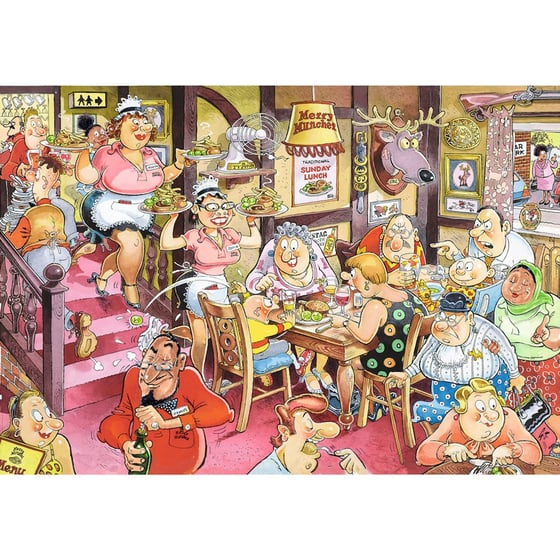 This jigsaw features a busy restaurant with hungry customers waiting as the waitresses are rushed off their feet as they try and meet the demands of the frustrated guests. Something is about to spoil their meal experience and leave the guests with an unpleasant taste in their mouth, can you guess what happens next?
