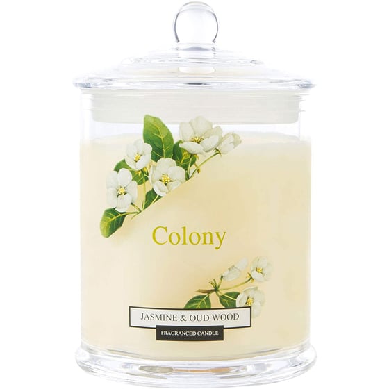 Light and warm up your home with the beautiful ambience of this jasmine and oud wood candle jar from Colony. The sweet scent of vibrant jasmine and soft oud wood burns evenly to lift the room and compliment its surroundings. Perfect for any room, the subtle aesthetic of the candle's design will fit into any environment and immediately make a house a home thanks to its modern aesthetics. You will really feel like you are lounging in a woodland lodge, watching the world go by as you sip on a warming drink. A long burn time of up to 84 hours will leave you confident in the knowledge that you'll be cosy for hours to come, with the scent lasting beautifully throughout the whole time. Capable of retaining its fragrance burn after burn, treat yourself to a wonderful evening surrounded by the scents of paradise.