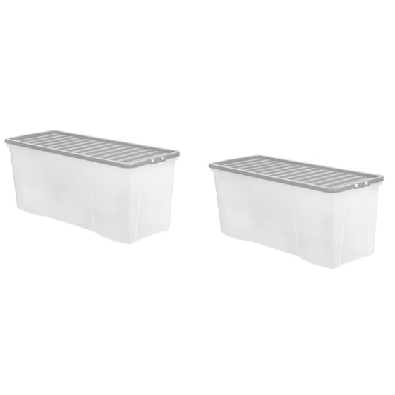 The largest box in our Crystal storage range, the 133 Litre Stacker box from Whatmore is capable of holding large quantities on just about anything you could need to store, from clothing and bedding to Christmas trees and decorations.