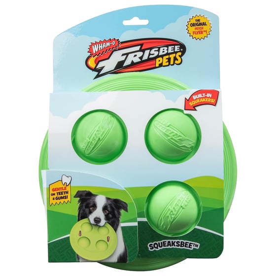 Keep your dog active, entertained, and safe with the Wham-O Squeaksbee Dog Frisbee—designed for fetch, fun and gentle squeaky play.