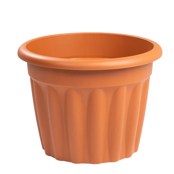 Brighten up your garden with this 40cm terracotta plastic vista round planter from Wham which would be a perfect addition to any garden or patio for complementing plants, flowers and topiary.