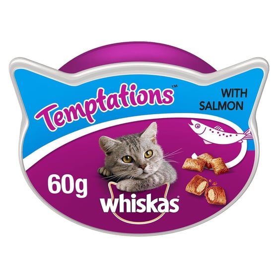 Indulge Your Feline Friend With Whiskas Temptations! Made With Real Salmon, These Delicious Treats Will Have Your Cat Purring With Delight.