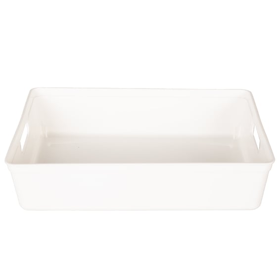 Banish The Chaos And Reclaim Your Surfaces With The White Plastic Shallow Storage Tray.