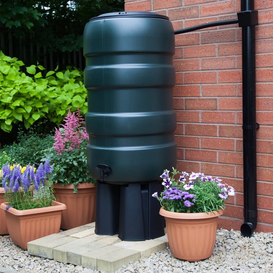 The water butt kit includes everything that you need to help store and dispense water when needed as it's complete with a stand, diverter, tap, t-piece & flexible hose and is so easy to install. The water butt is easy to fit with an Include template for marking downpipe for cutting and includes internally threaded holes for taps & connections which can be installed with no drilling required.