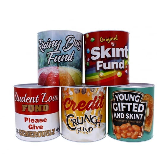 Save up all your cash and coins in style with the XL student money tin.