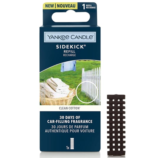 Eliminate odours and freshen up your car with the Yankee Candle clean cotton sidekick car air freshener.