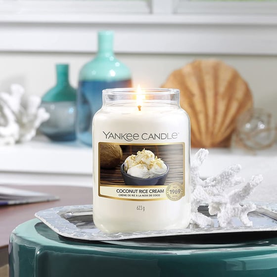 The coconut rice cream scented large jar candle from Yankee Candle is a classic easy to use candle which has been made with notes of aromatic Rice and fragrant Coconut - freshly scooped at an oceanside island market.