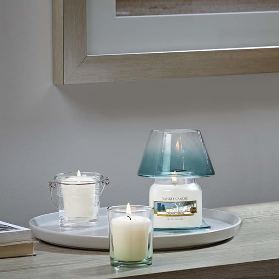 This Shade & Tray combo from Yankee Candle is perfect for decorating your small candles and has been designed exclusively for a Yankee Candle small jar candle.