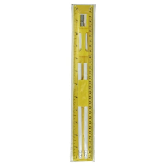 The Yellow Ruler Set Is Perfect For Home, Office, And School Use And Features A Plastic Ruler, 2 Pencils, 1 Rubber, And A Sharpener To Help Keep Them Sharp.