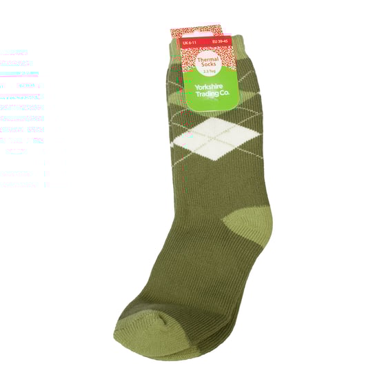 Each pair carries a 2.3 Tog thermal rating, confirming high heat retention compared to standard socks. The brushed inner lining creates a gentle cushion of warmth, trapping air close to the skin while allowing moisture to escape. Reinforced heels and toes increase strength in the areas that wear most, and the ribbed cuff ensures a secure, comfortable fit throughout the day. The traditional argyle pattern adds a subtle touch of familiarity, making them suitable for work, leisure and everything in between.