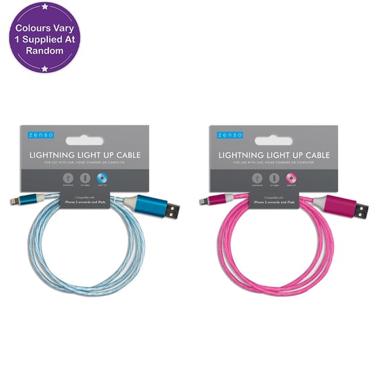 The lightning light-up charging cable from Zenzo is ideal for use in cars, home charging, or as a computer charger.