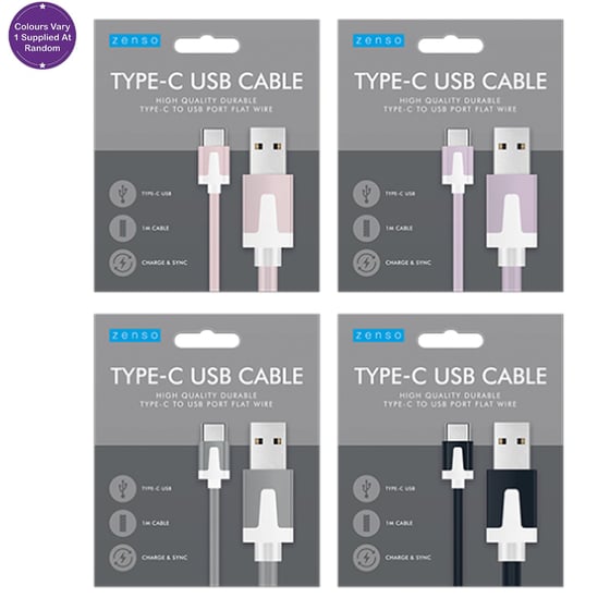 The coloured Flat USB cable are ideal for charging and data syncing and features a type C USB connector for any type C device.