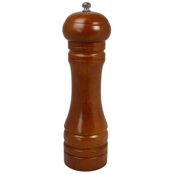 Traditionally shaped, this delightful looking Pepper Mil has been made from oakwood with a walnut coated colour that allows for the wood grain to stand out.