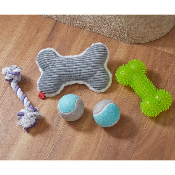 - Includes 5 Different Dog Toys