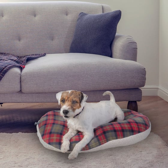 Provide your dog with somewhere comfortable and cosy to rest and sleep with this delightful checked oval dog cushion from Zoon which will allow for your dog to unwind and relax after a long walk in the great outdoors. The wonderfully versatile oval dog cushion has been covered in a cosy, warm fleece.